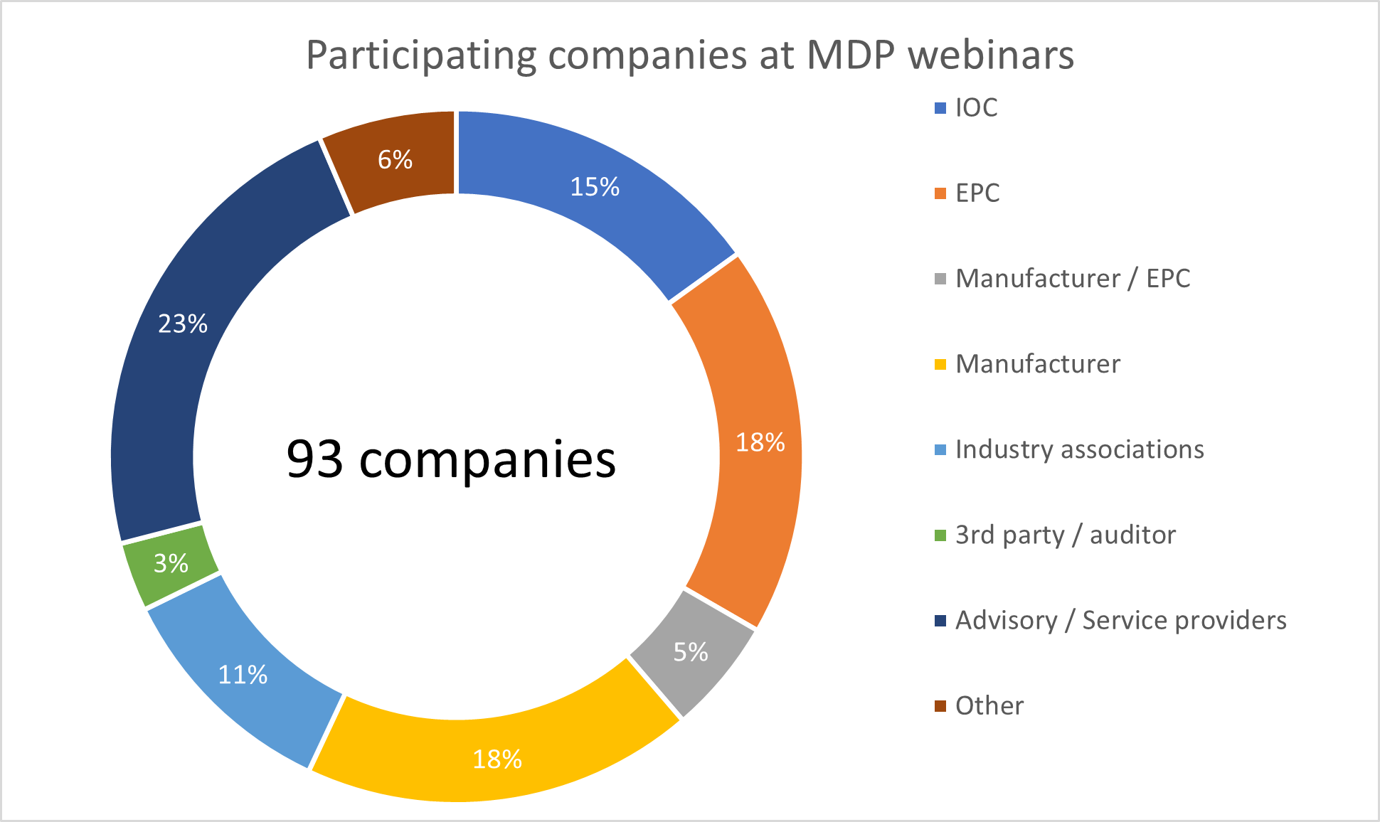 Two one-hour webinars aimed to raise awareness about the MDP initiative and provide an overview of its development status, key principles, and building blocks. With 246 participants from 93 different companies and associations spanning the energy industry’s supply chain, as well as digital service providers and consortia with ties to the IOGP Joint Industry Sprint 01 (JIS01), the webinars showcased widespread interest and engagement.
